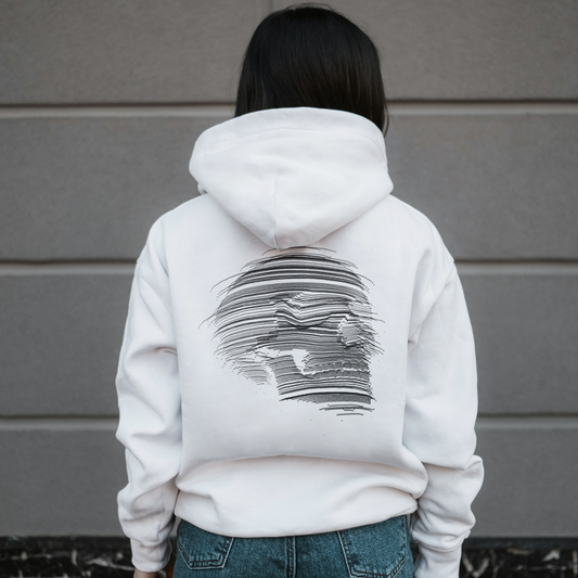 White Hoodie Sweatshirt | Distort Skull Unisex
