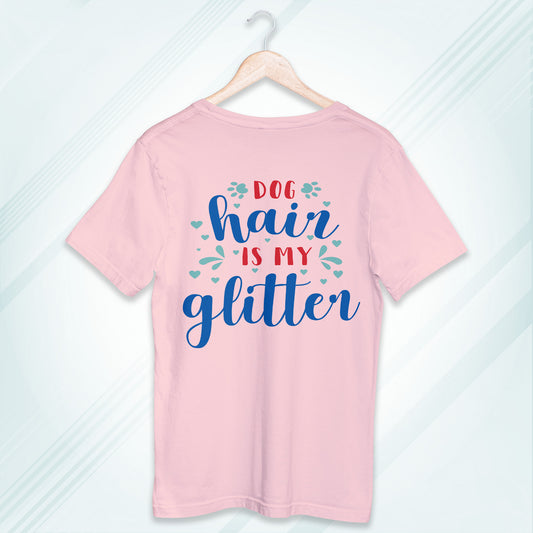 Light Pink Round Neck Oversized Cotton Printed T-shirt Dog Hair is my Glitter Unisex