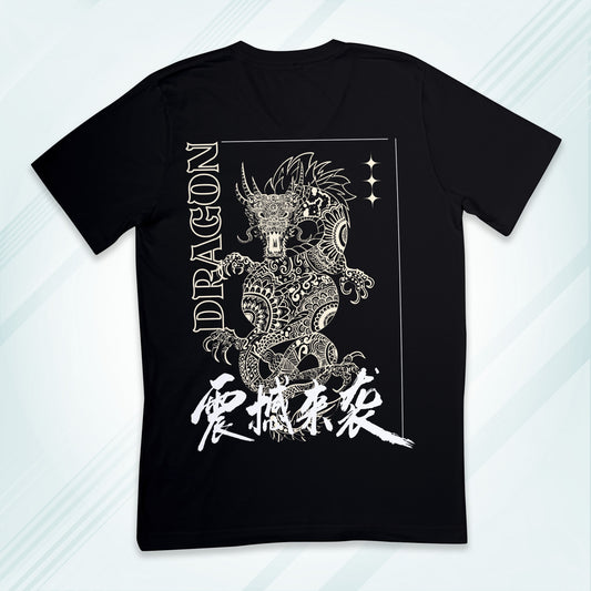 Black Round Neck Oversized Cotton Printed T-shirt Dragon Shock Unisex