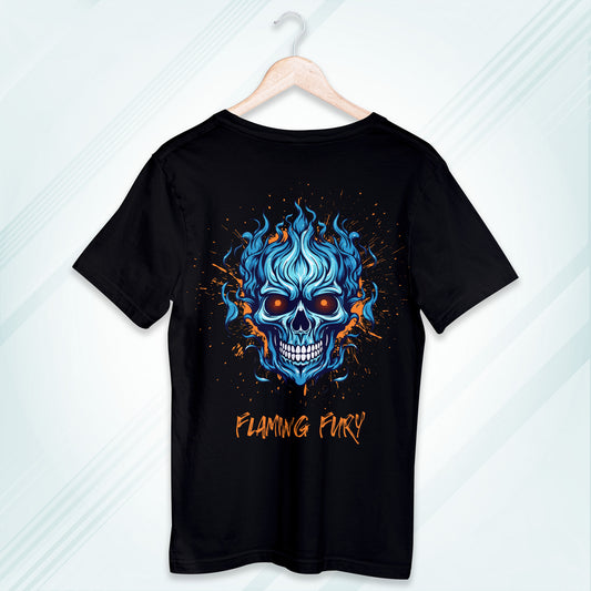 Black Round Neck Oversized Cotton Printed T-shirt Flaming Fury Unisex