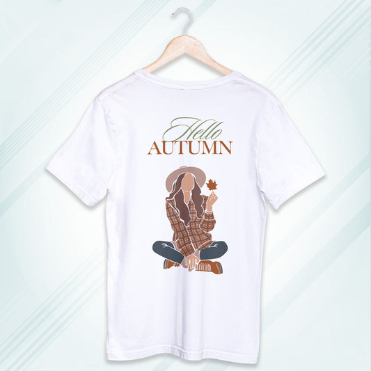 White Round Neck Oversized Cotton Printed T-shirt Hello Autumn Unisex