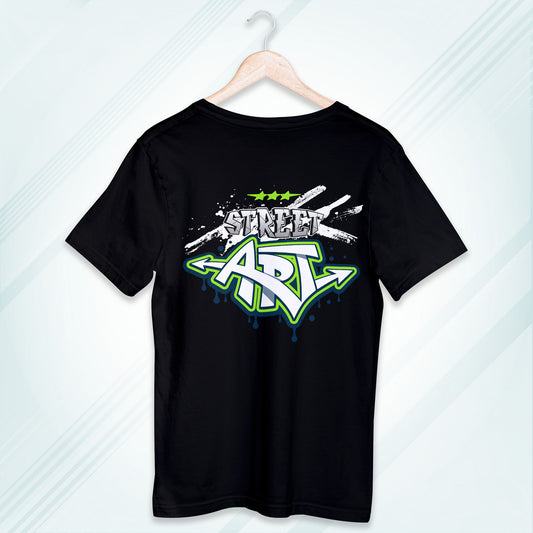 Black Round Neck Oversized Cotton Printed T-shirt Neon Street Art Unisex