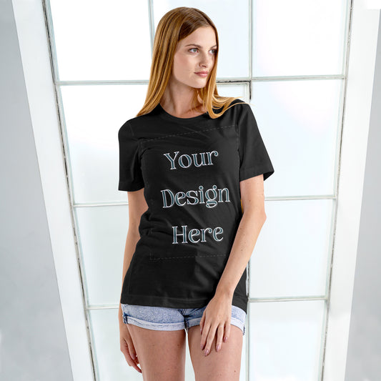 Black Round Neck Cotton Classic Crew T-shirt Front Customized Design | Unisex