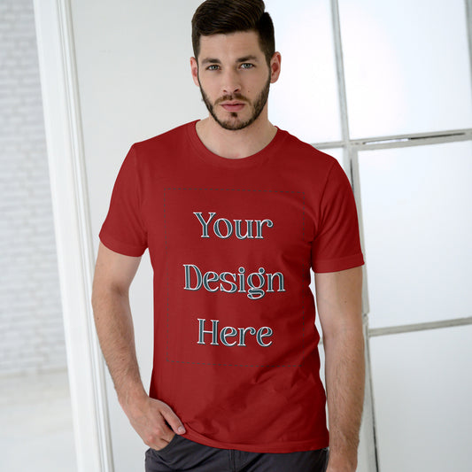 Red Round Neck Cotton Classic Crew T-shirt Front Customized Design | Unisex