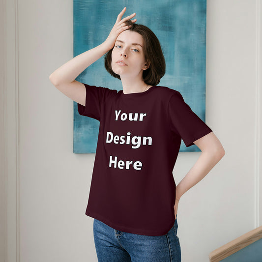 Maroon Round Neck Cotton Classic Crew T-shirt Front Customized Design | Unisex
