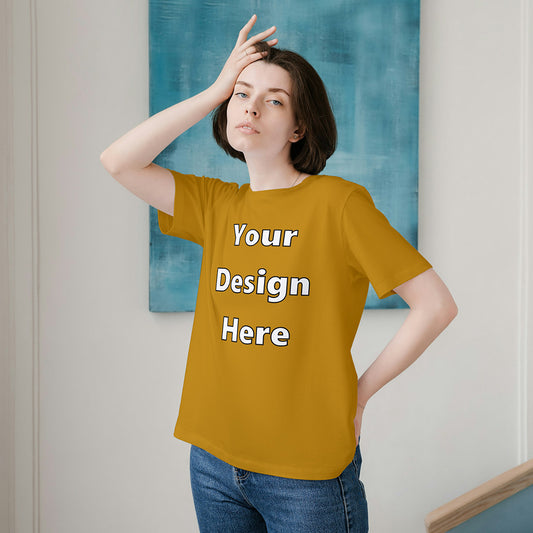 Mustard Yellow Round Neck Cotton Classic Crew T-shirt Front Customized Design | Unisex