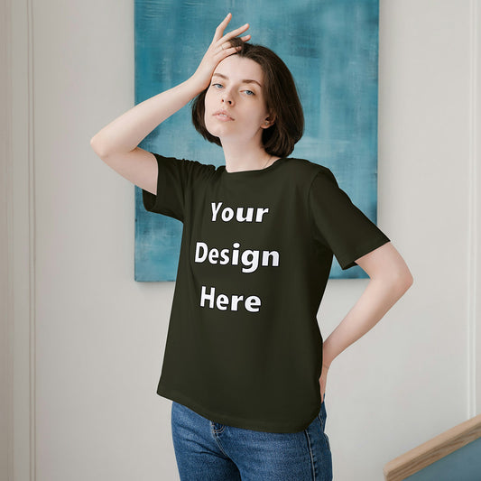 Olive Green Round Neck Cotton Classic Crew T-shirt Front Customized Design | Unisex