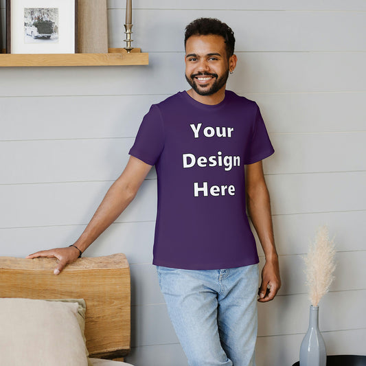 Purple Round Neck Cotton Classic Crew T-shirt Front Customized Design | Unisex