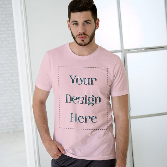 Peach Round Neck Cotton Classic Crew T-shirt Front Customized Design | Unisex