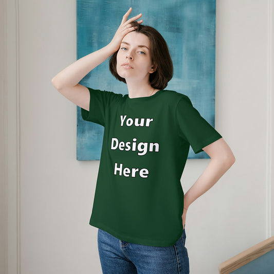Green Round Neck Cotton Classic Crew T-shirt Front Customized Design | Unisex