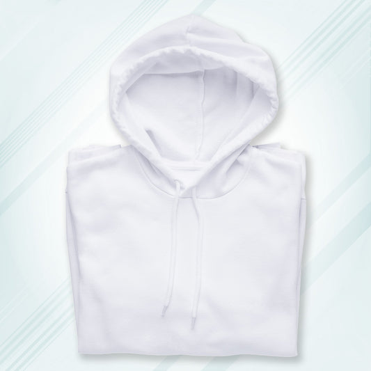 White Regular Fit Zip Hoodie Poly Cotton Fleece Sweatshirt Long Sleeves