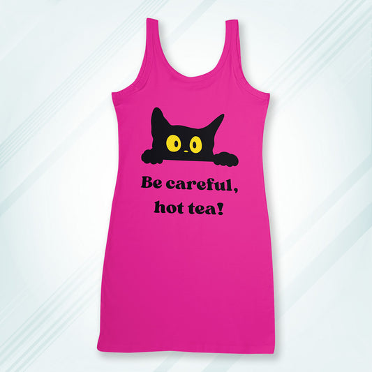 Pink Regular Fit Tank Top Be Careful Hot Tea Cat | Women