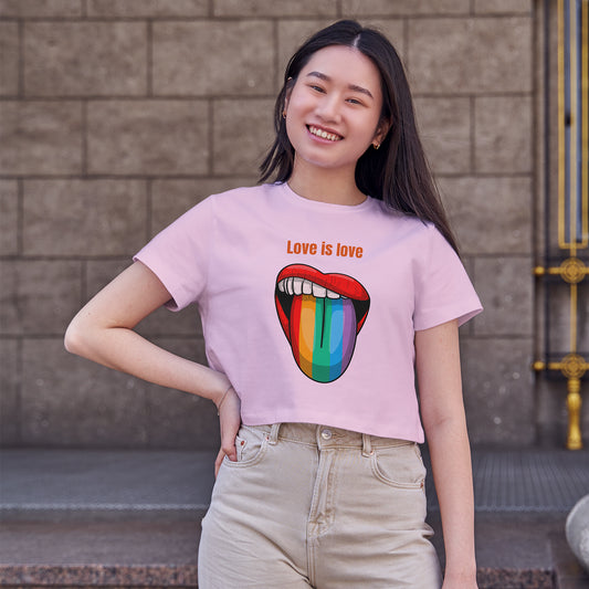Love in Love Pride Tongue Cotton Round Neck Half Sleeve Crop Top | Women