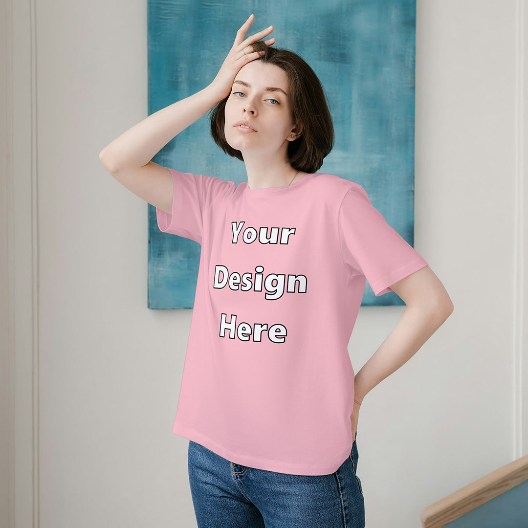 Light Pink Round Neck Cotton Classic Crew T-shirt Front Customized Design | Unisex
