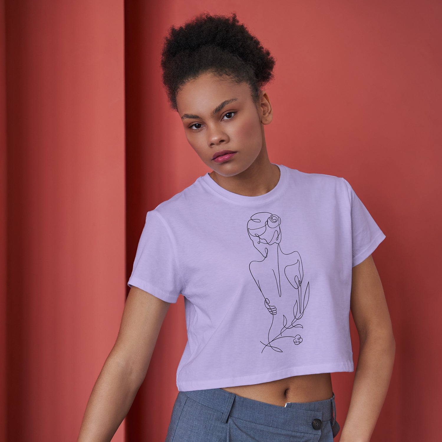 Woman Pastel Boho Cotton Round Neck Half Sleeve Crop Top | Women