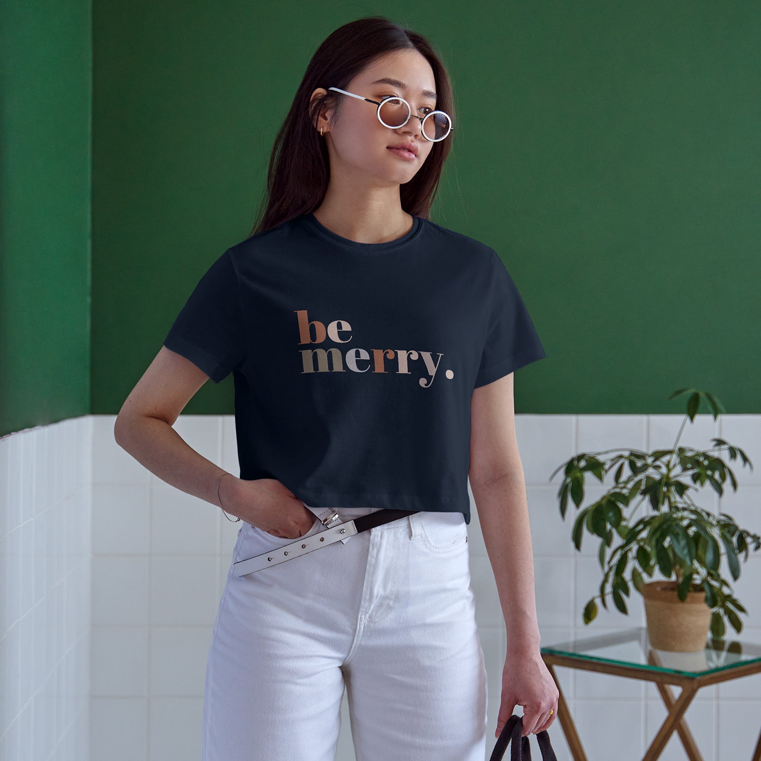 Be Merry Cotton Round Neck Half Sleeve Crop Top | Women