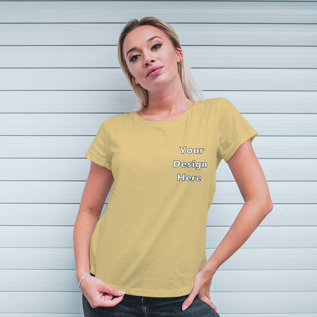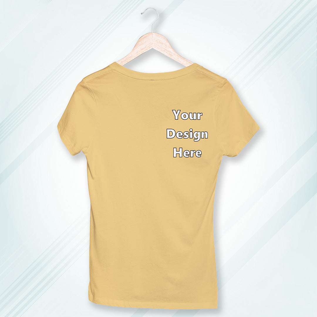 Beige Round Neck Classic Customized T-Shirt Front Pocket Design | Women