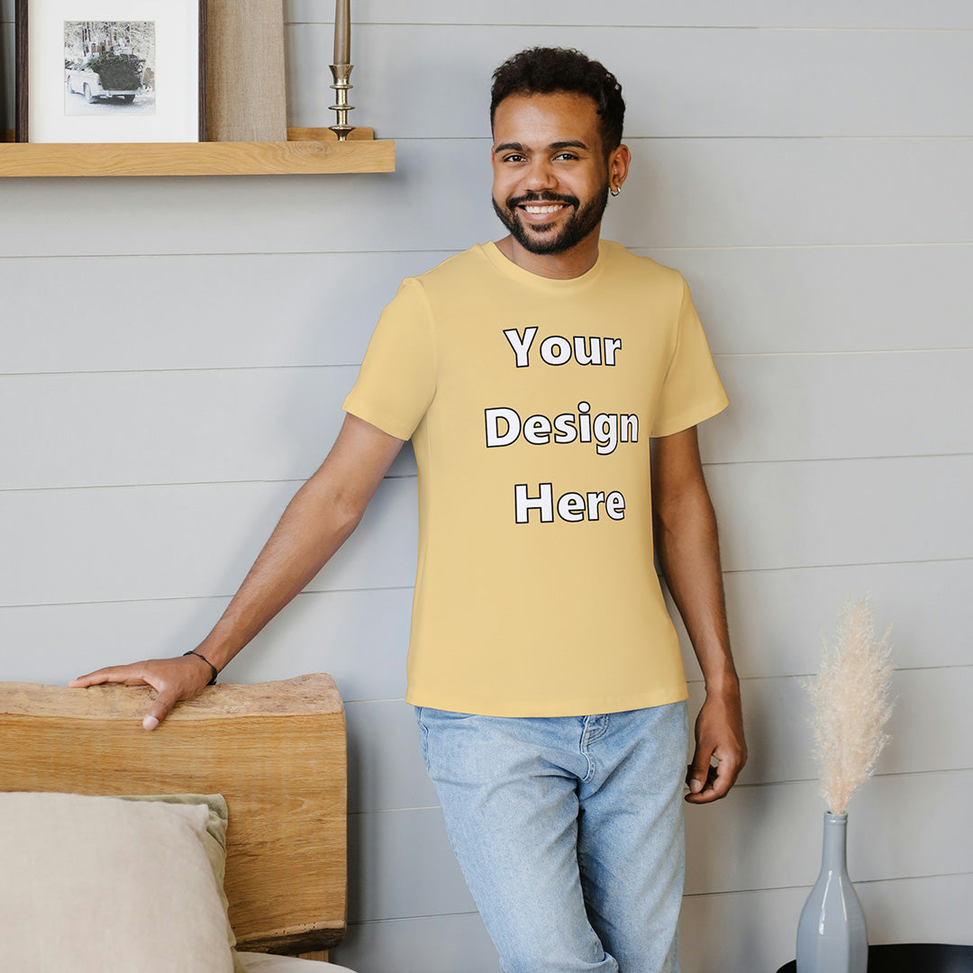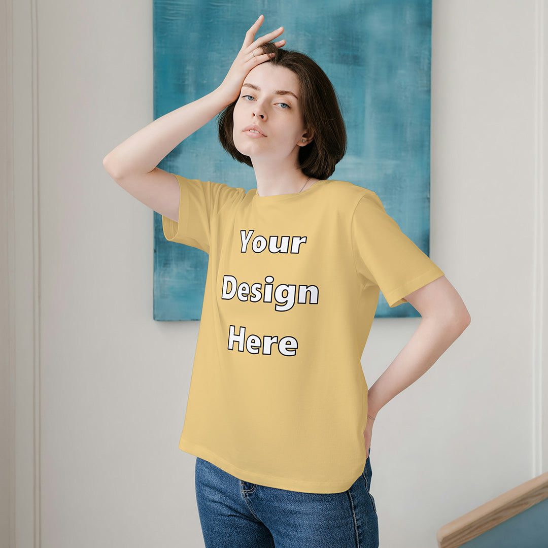 Beige Round Neck Cotton Classic Crew T-shirt Front Customized Design | Unisex
