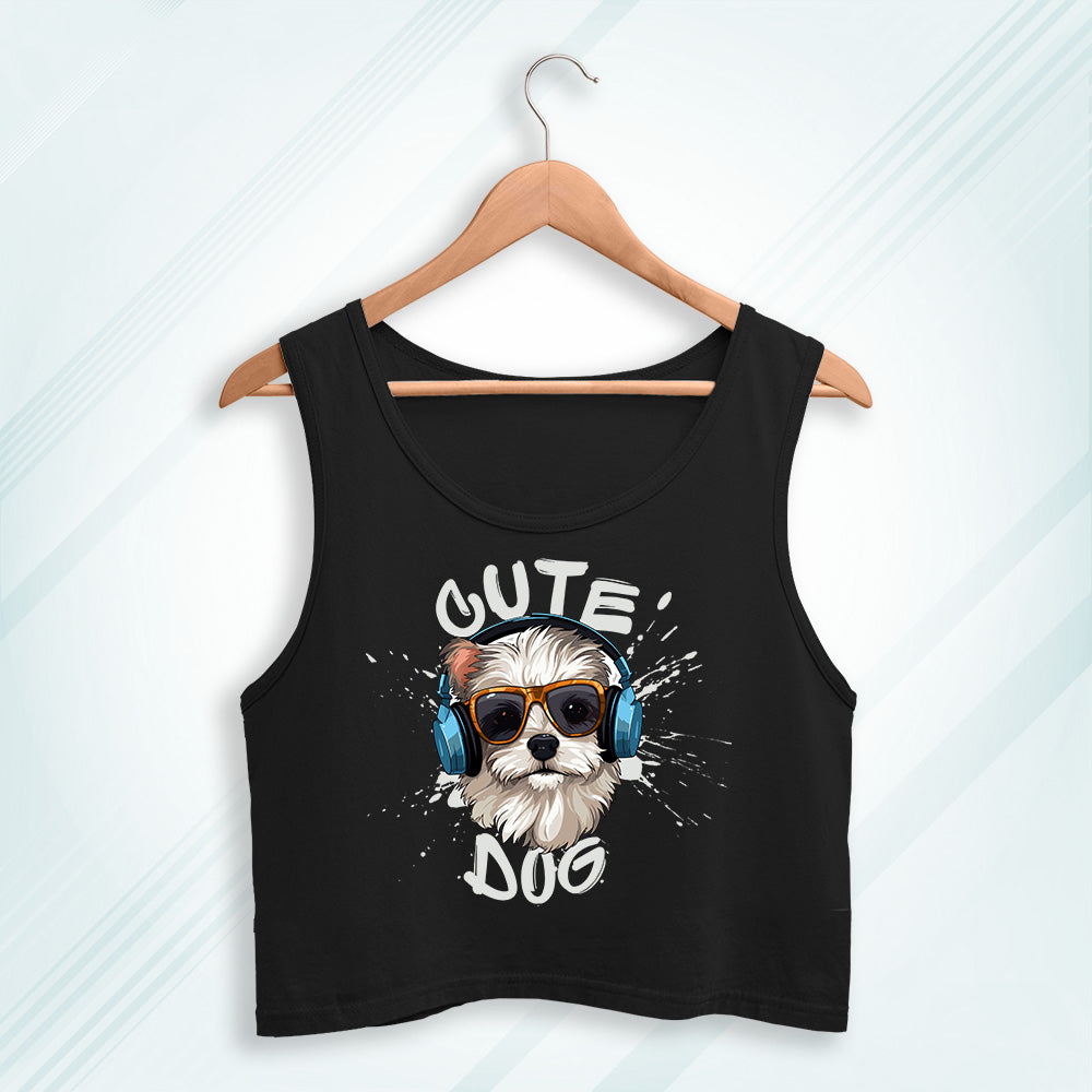Black Cotton Cute Dog Printed Sleeveless Crop Tank | Women