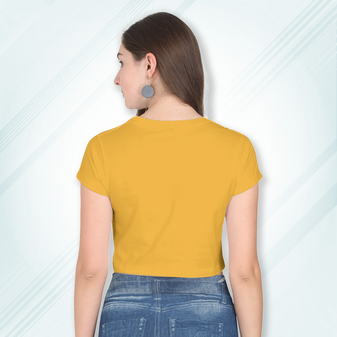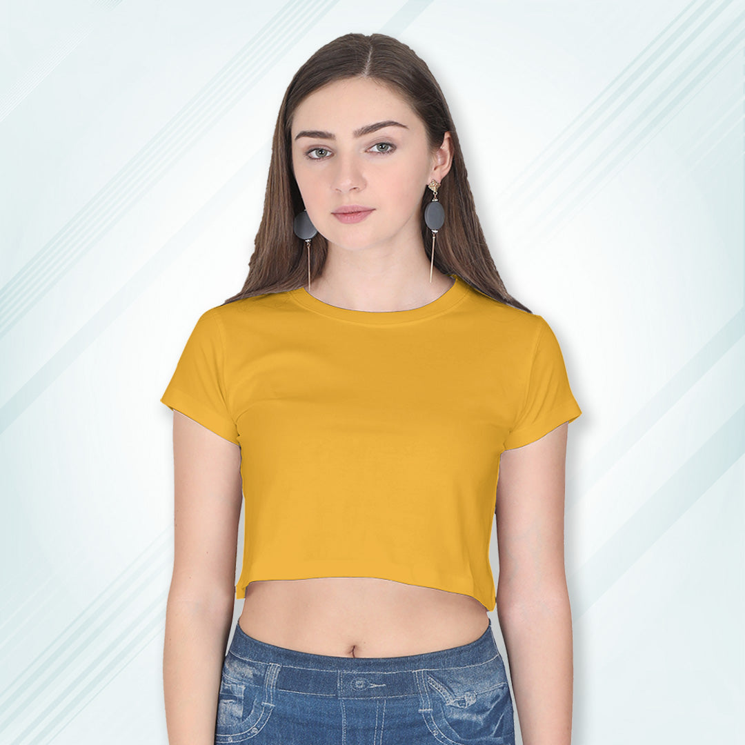 Golden Yellow Cotton Plain Round Neck Half Sleeve Crop Top | Women