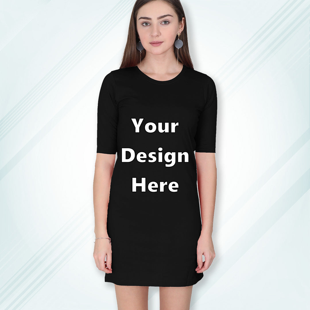 Black Customized Long T-Shirt Dress with Side Pockets Front Design | Women