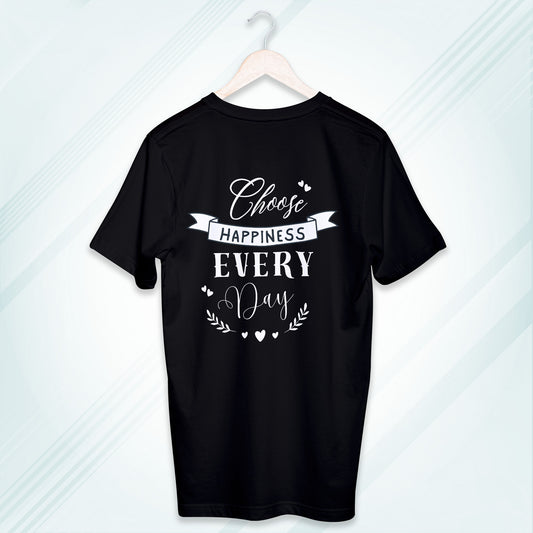 Black Round Neck Classic Crew Solid T-shirt Choose Happiness Every Day