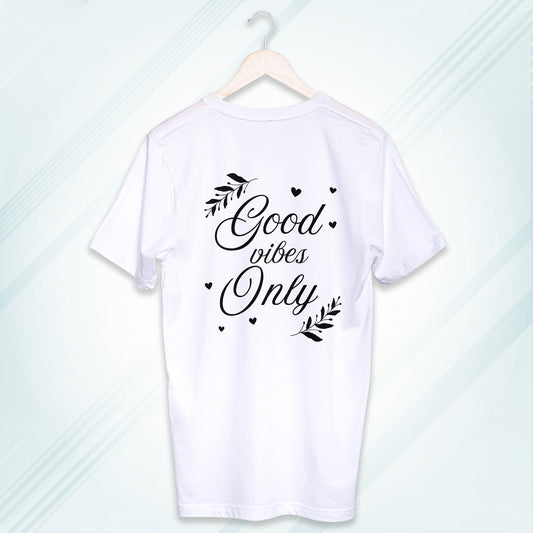 White Round Neck Classic Crew Solid T-shirt Good vibes Only