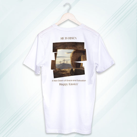 White Round Neck Classic Crew Solid T-shirt He is Risen Happy Easter