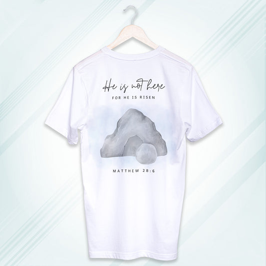 White Round Neck Classic Crew Solid T-shirt Jesus He is not Here for He is Risen