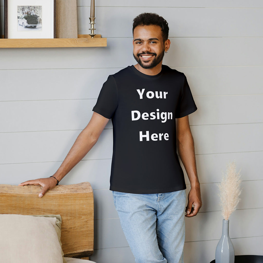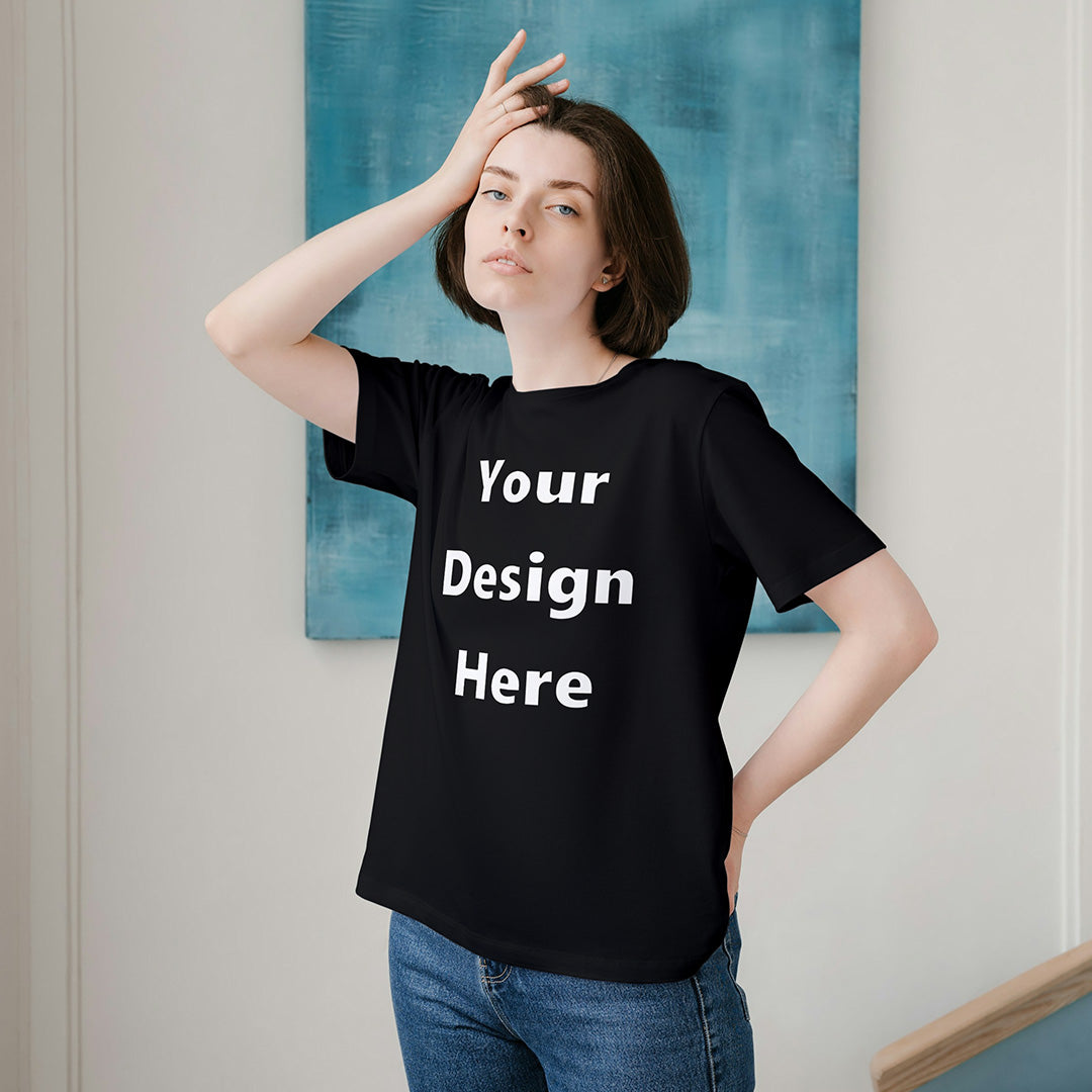 Black Round Neck Cotton Classic Crew T-shirt Front Customized Design | Unisex