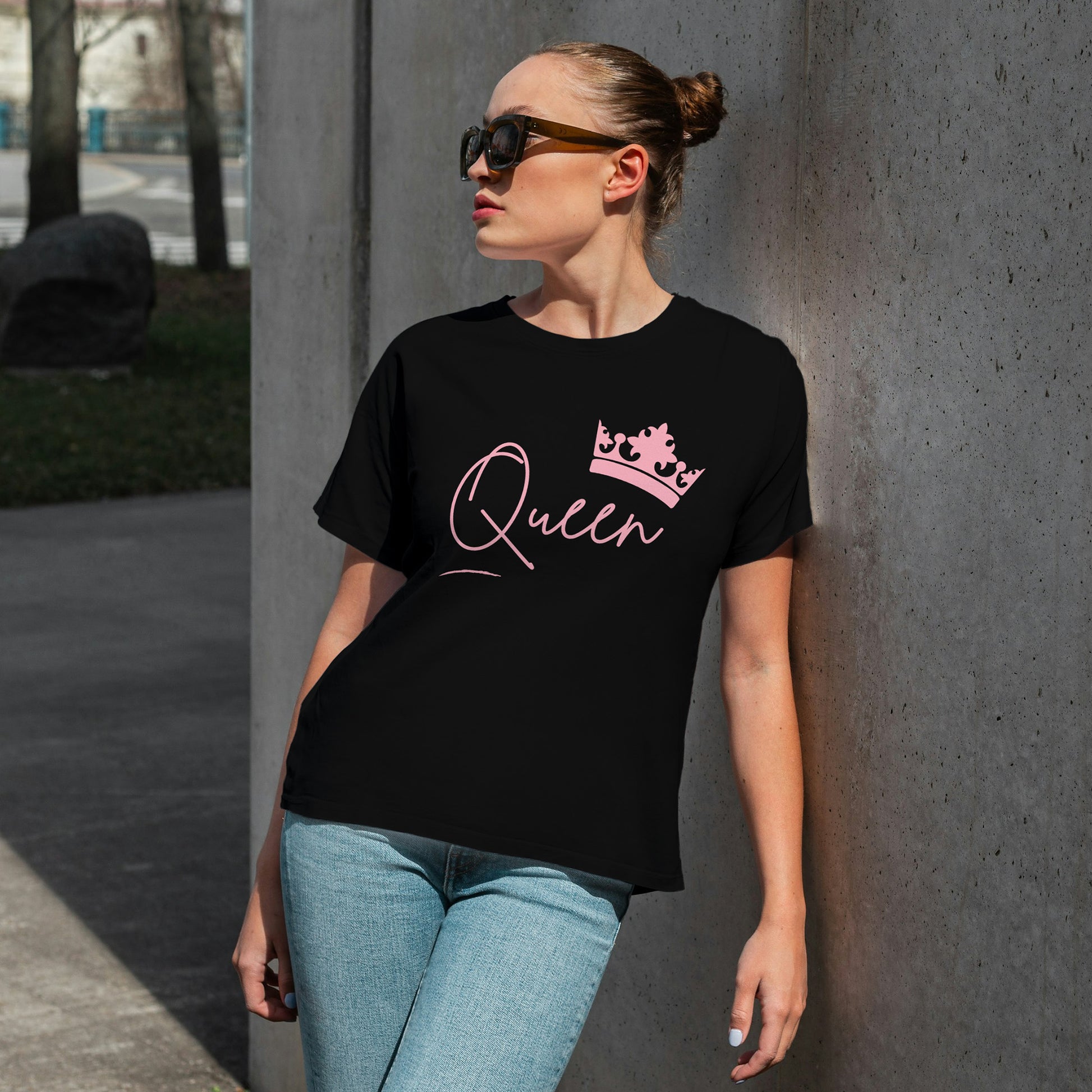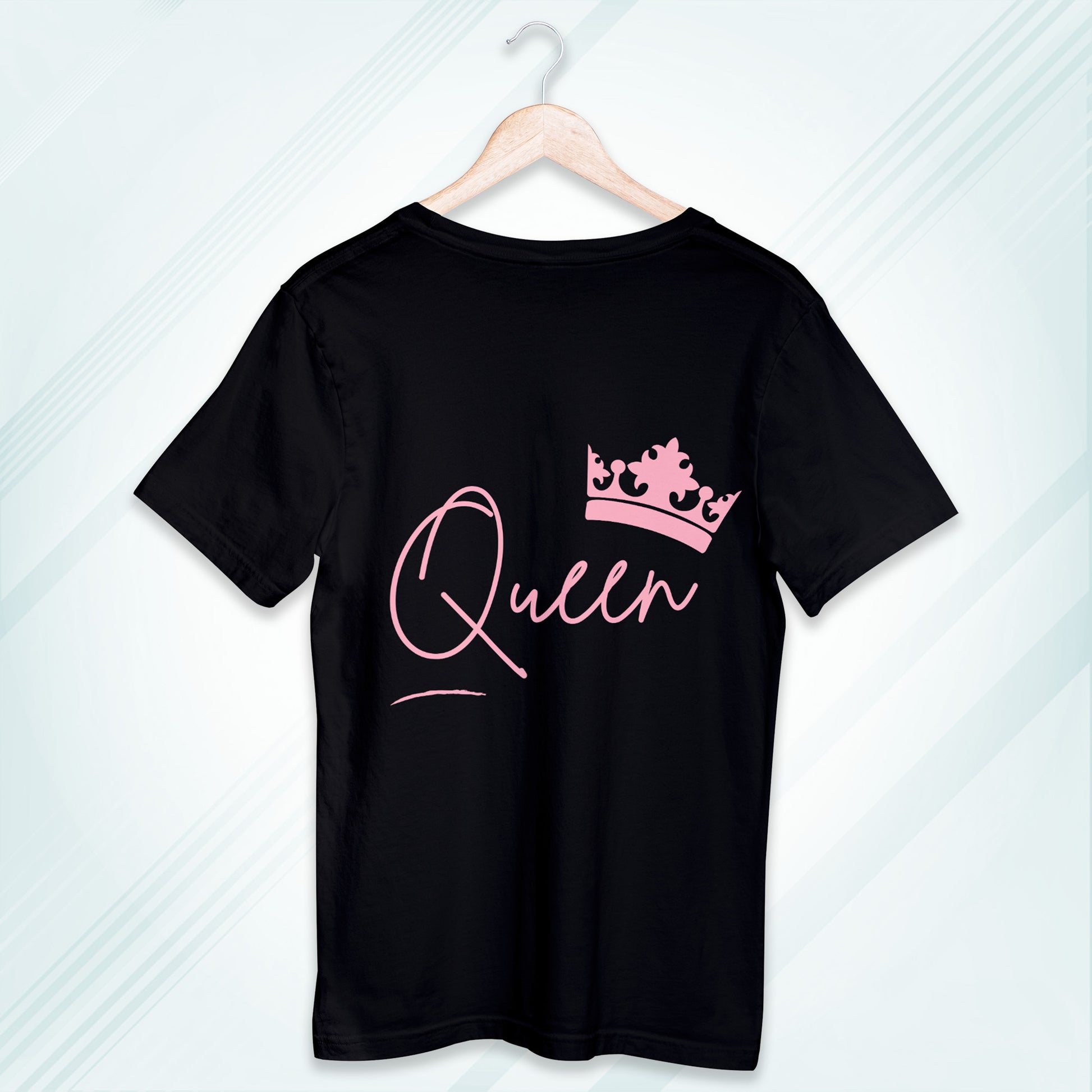 Black Round Neck Oversized Cotton Printed T-shirt Queen
