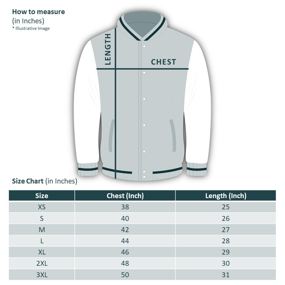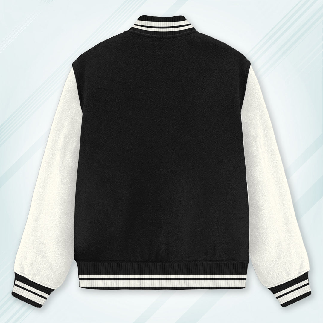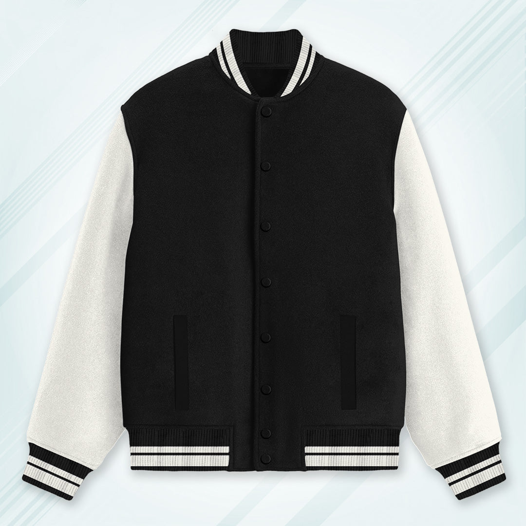 Black Varsity Unisex Long Sleeves Band Neck Cotton Blend Varsity Jacket