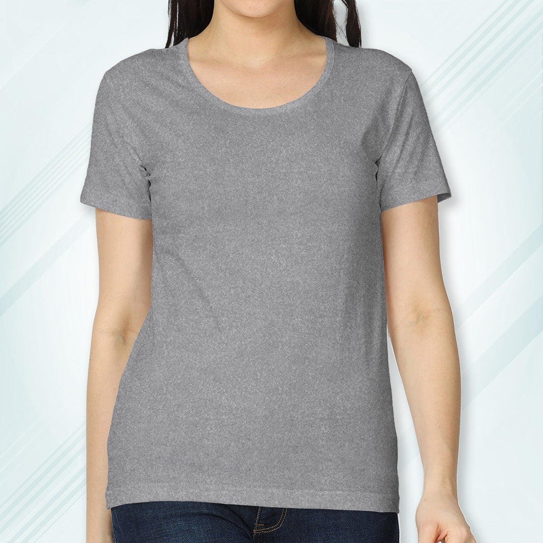 Grey Melange Round Neck Classic Solid T-shirt | Women