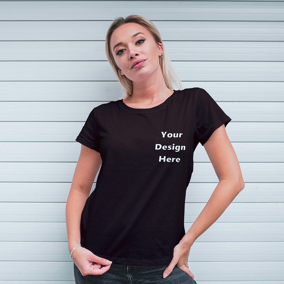 Coffee Brown Round Neck Classic Customized T-Shirt Front Pocket Design | Women