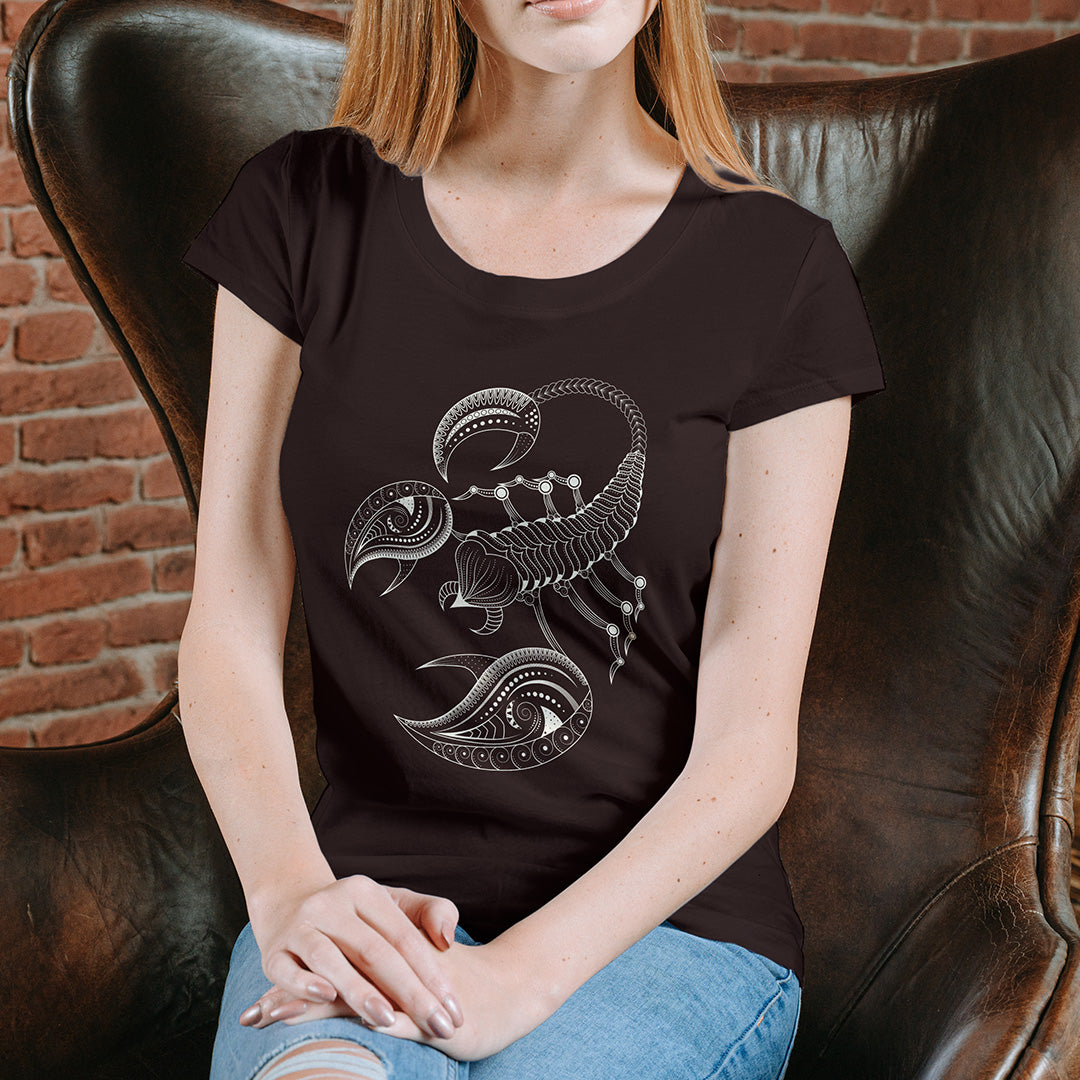 Coffee Brown Round Neck Classic Printed Classic T-Shirt Scorpio Horoscope | Women