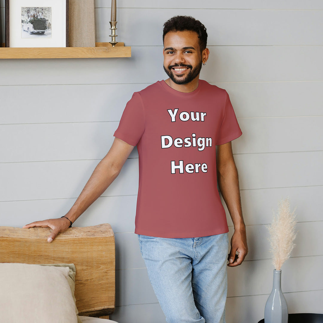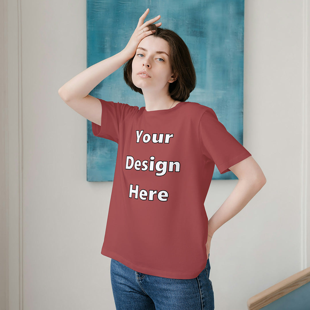 Coral Round Neck Cotton Classic Crew T-shirt Front Customized Design | Unisex