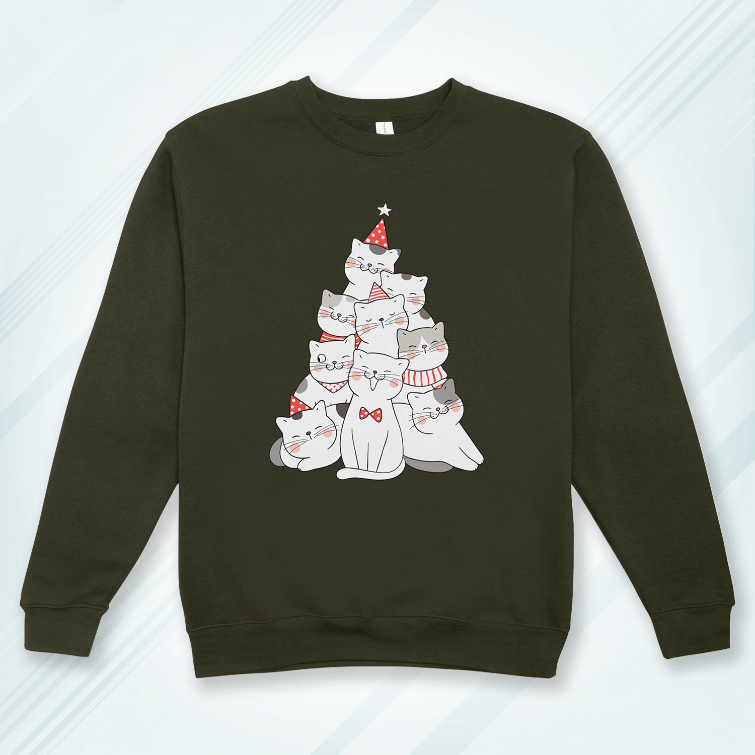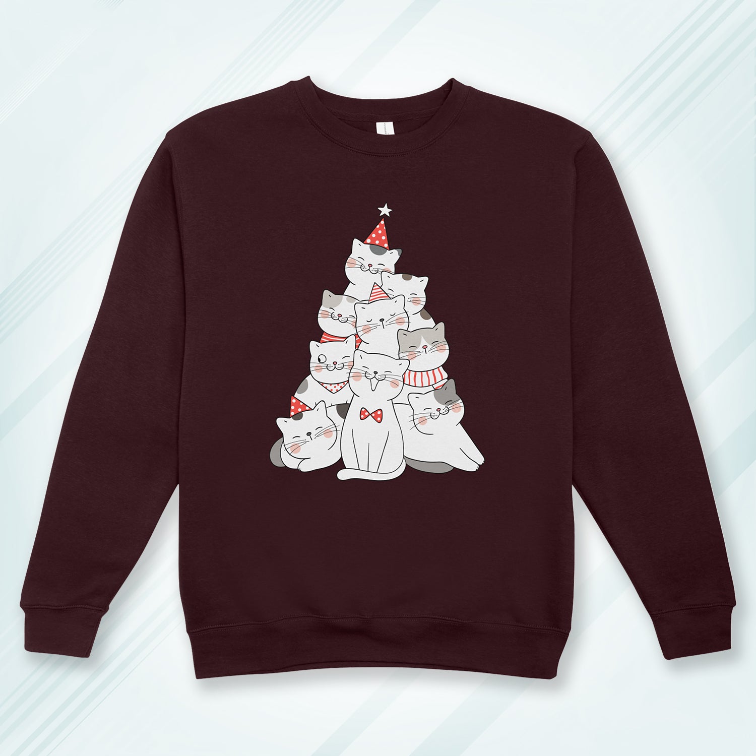 Cotton Printed Unisex Sweatshirt Cat Christmas Tree