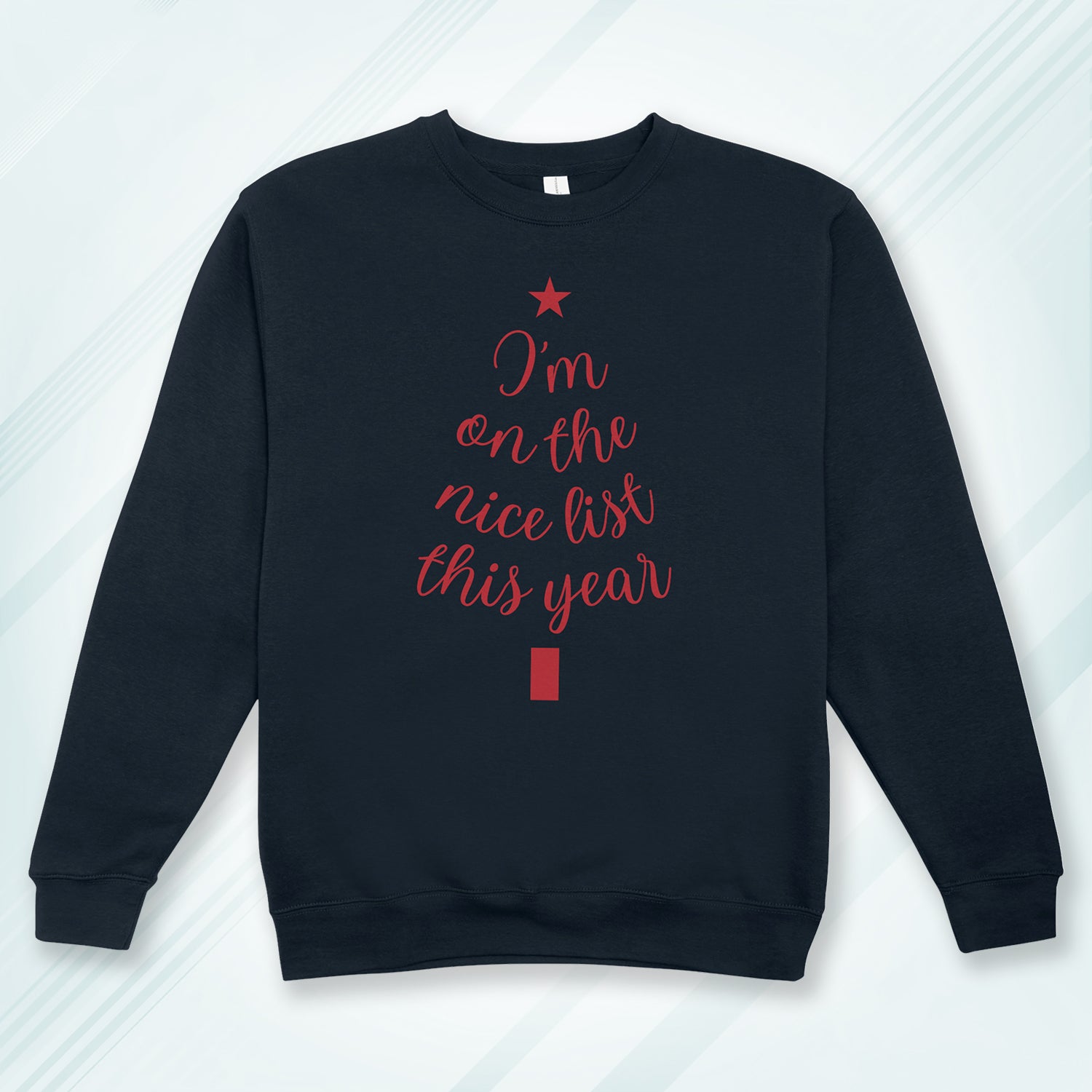 Cotton Printed Unisex Sweatshirt I am on the Nice List this Year