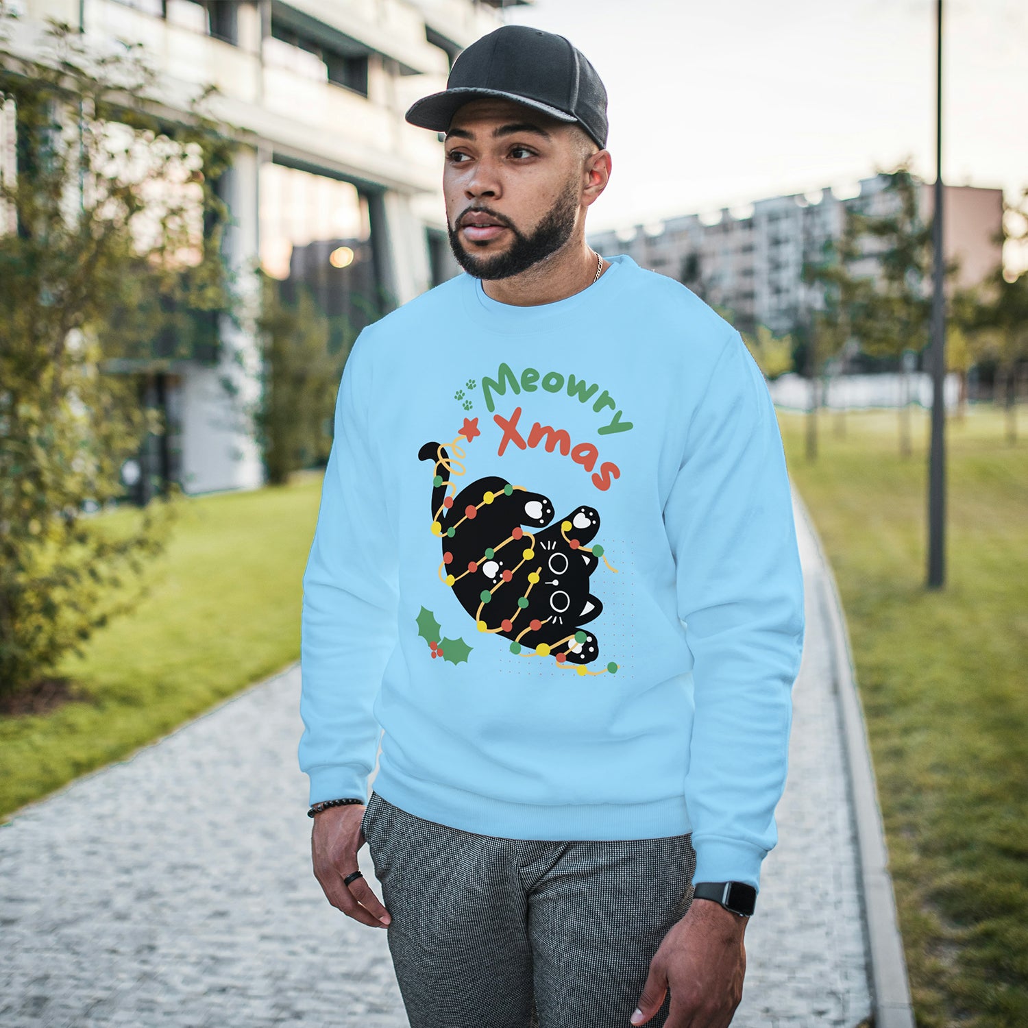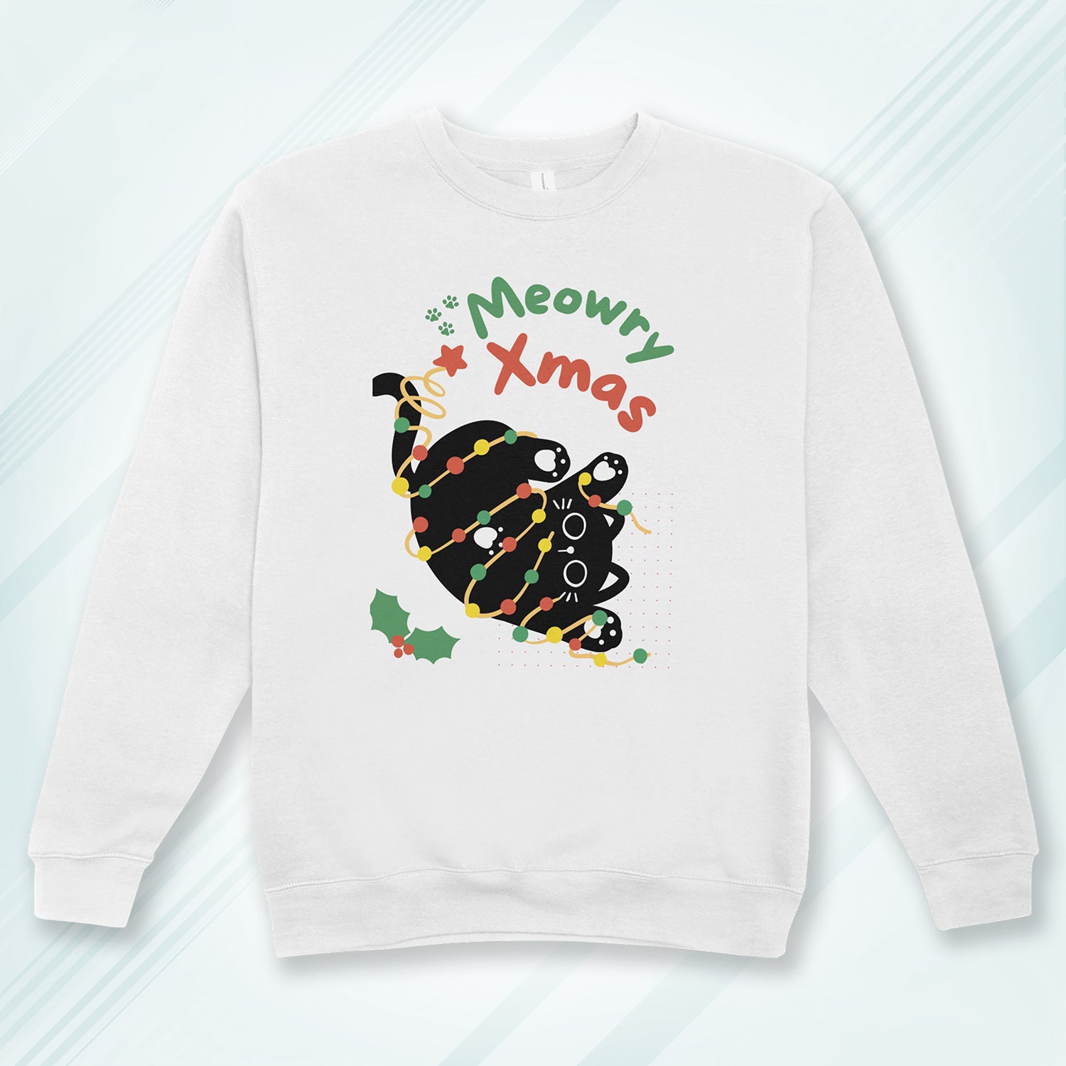 Cotton Printed Unisex Sweatshirt Meowry Xmas