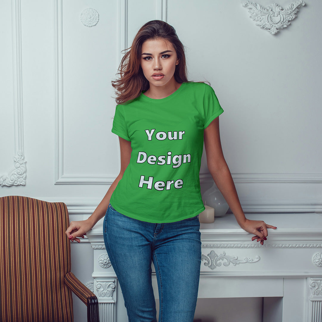 Flag Green Round Neck Classic Customized T-Shirt Front Design | Women