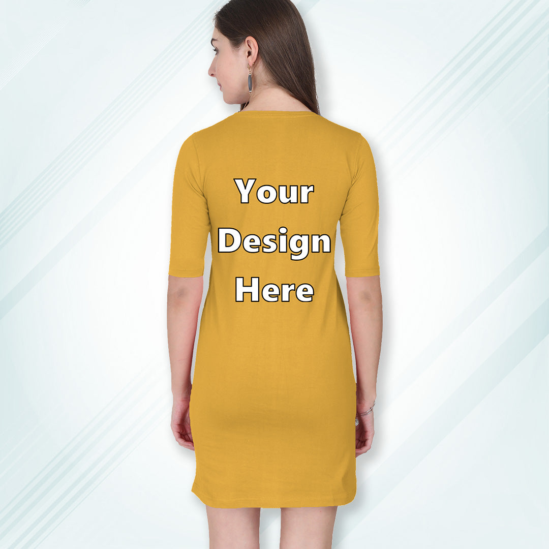 Golden Yellow Customized Long T-Shirt Dress with Side Pockets Back Design | Women