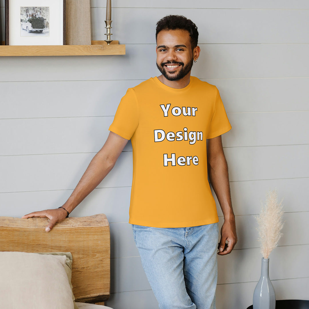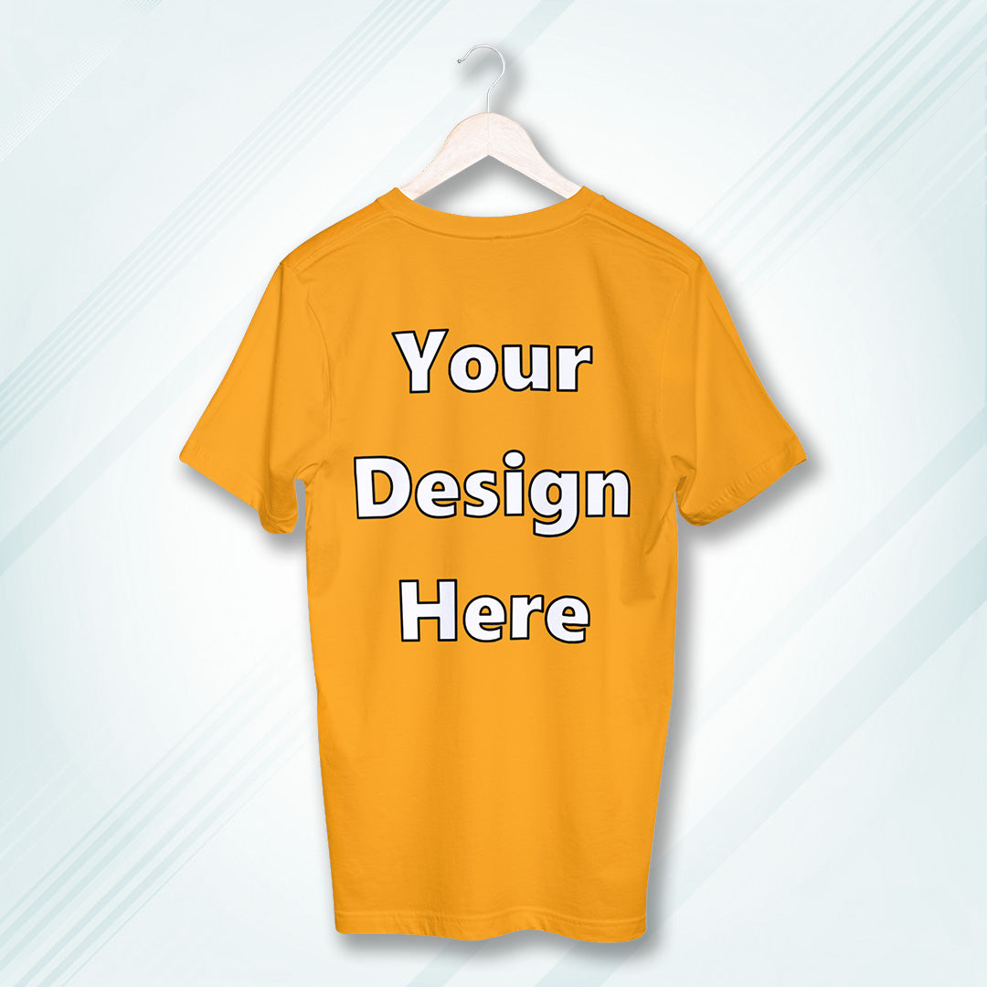 Golden Yellow Round Neck Cotton Classic Crew T-shirt Front Customized Design | Unisex
