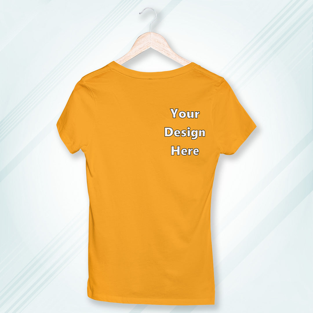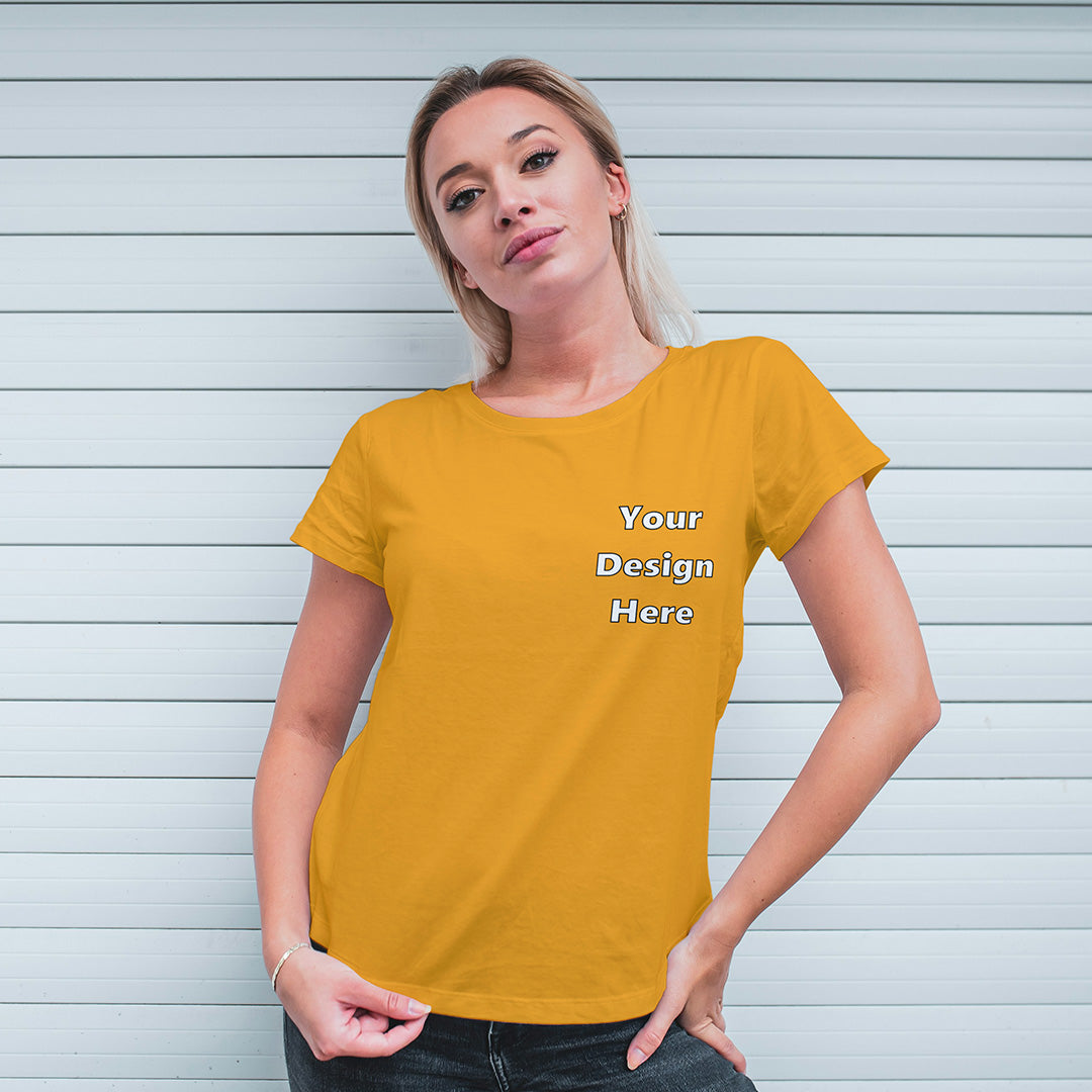 Golden Yellow Round Neck Classic Customized T-Shirt Front Pocket Design | Women