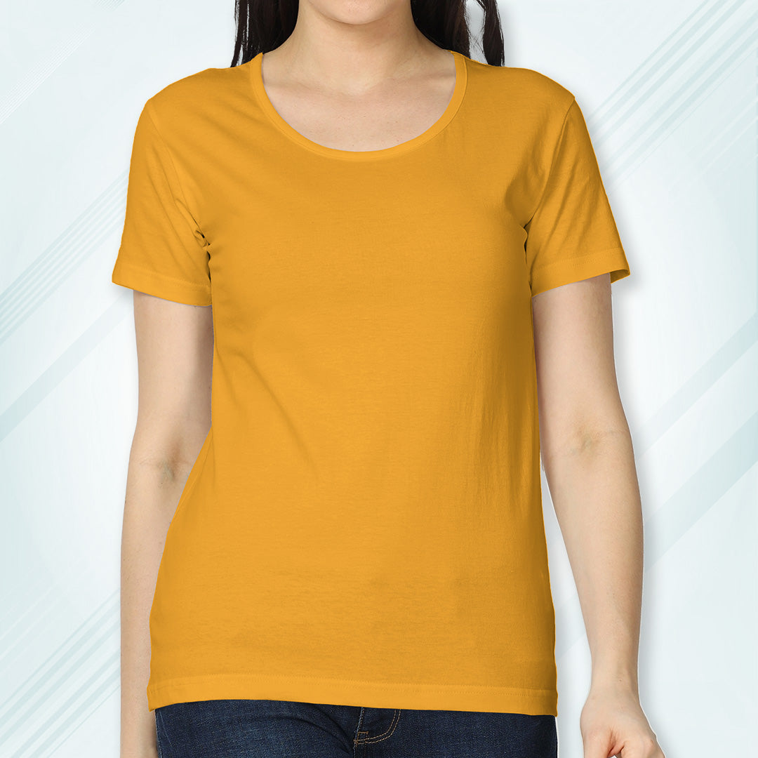 Golden Yellow Round Neck Classic Solid T-shirt | Women
