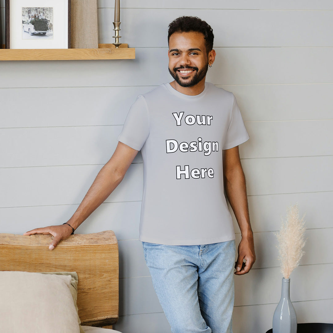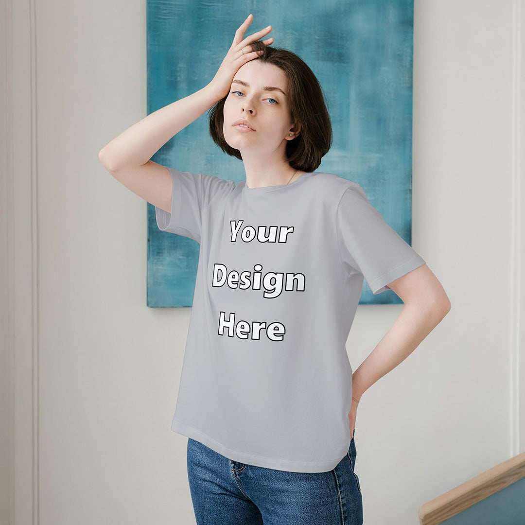 Grey Melange Round Neck Cotton Classic Crew T-shirt Front Customized Design | Unisex