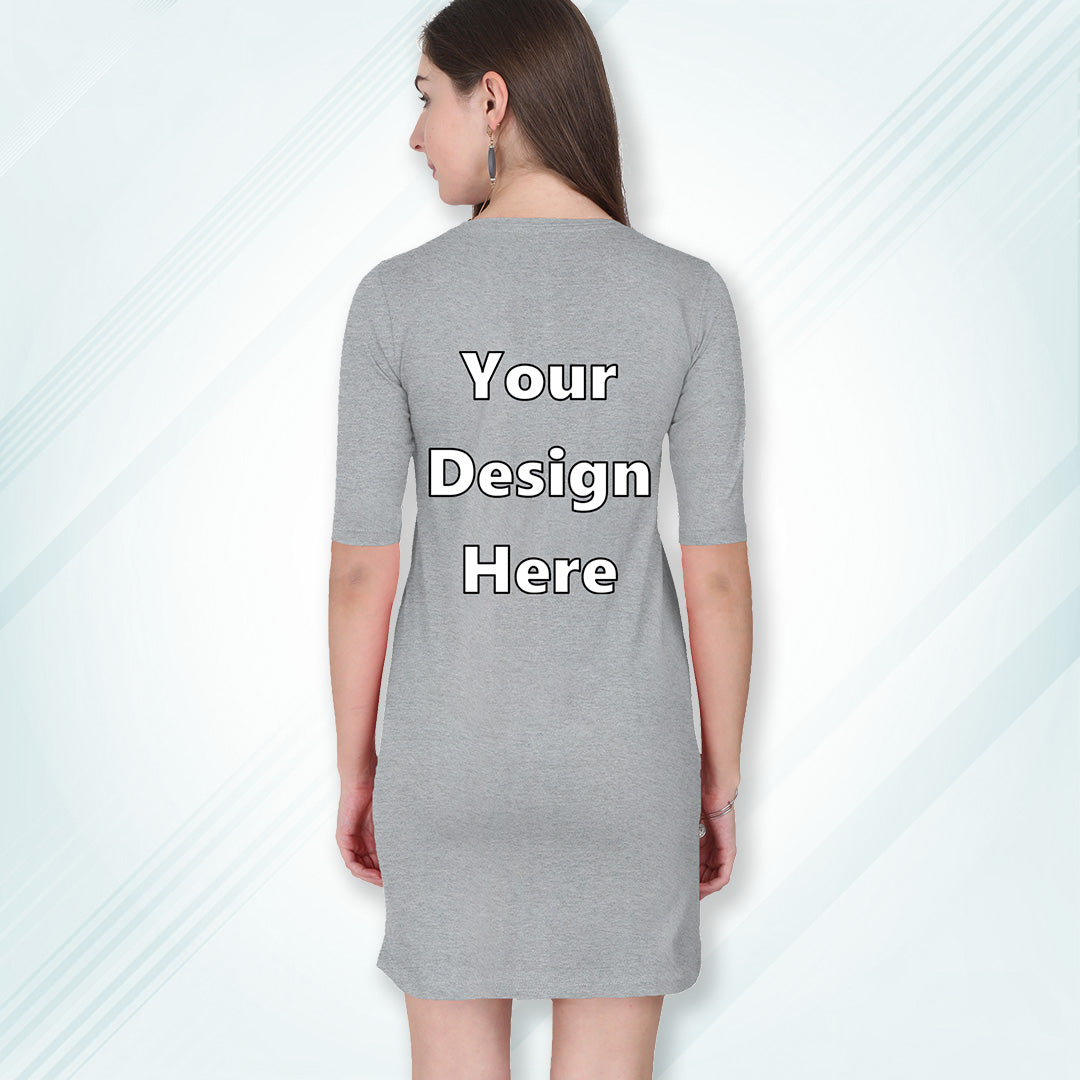 Grey Melange Customized Long T-Shirt Dress with Side Pockets Back Design | Women