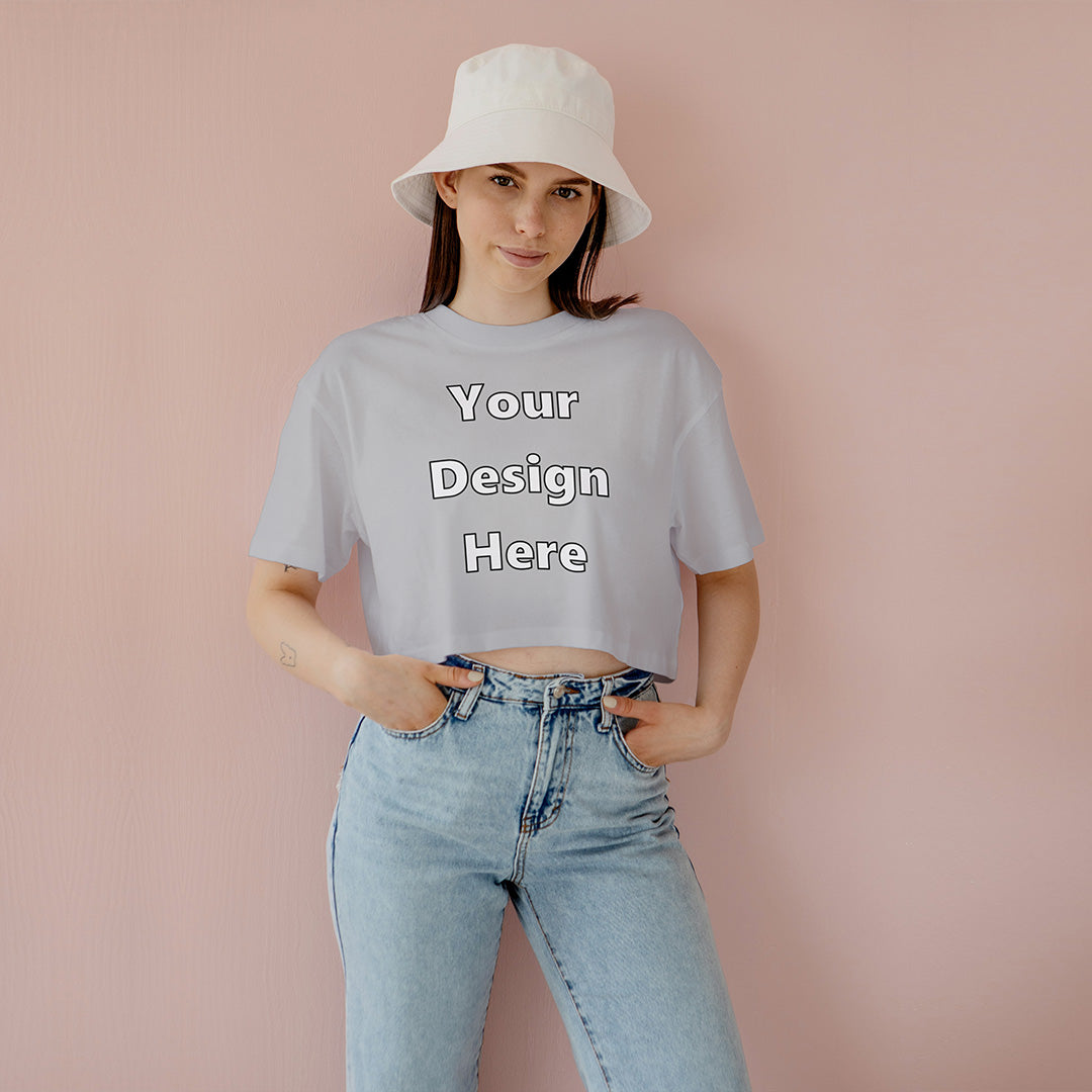 Grey Melange Customized Regular Fit Crop Top Front Design | Women