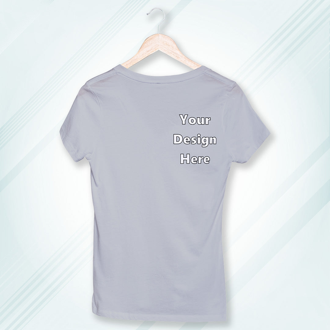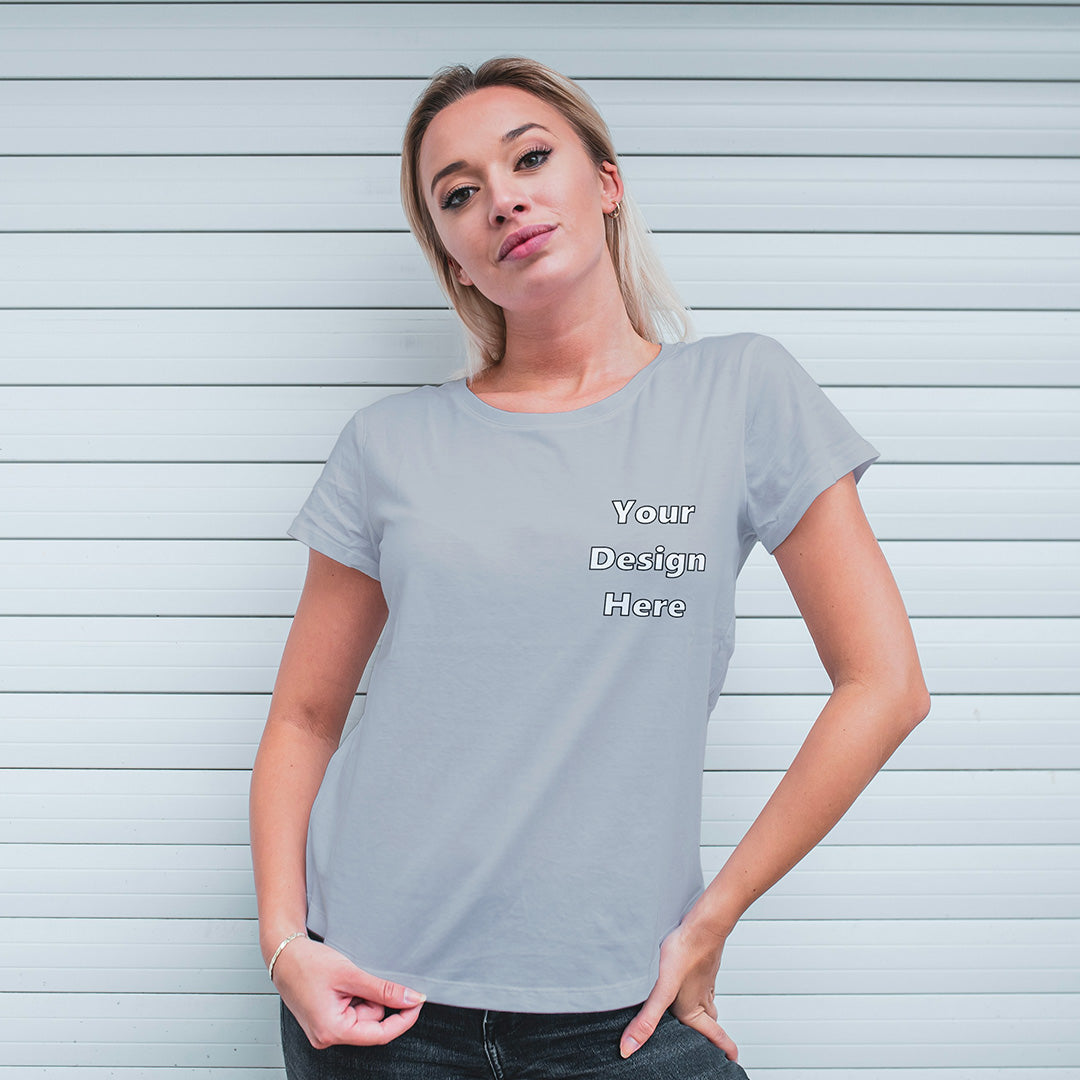 Grey Melange Round Neck Classic Customized T-Shirt Front Pocket Design | Women