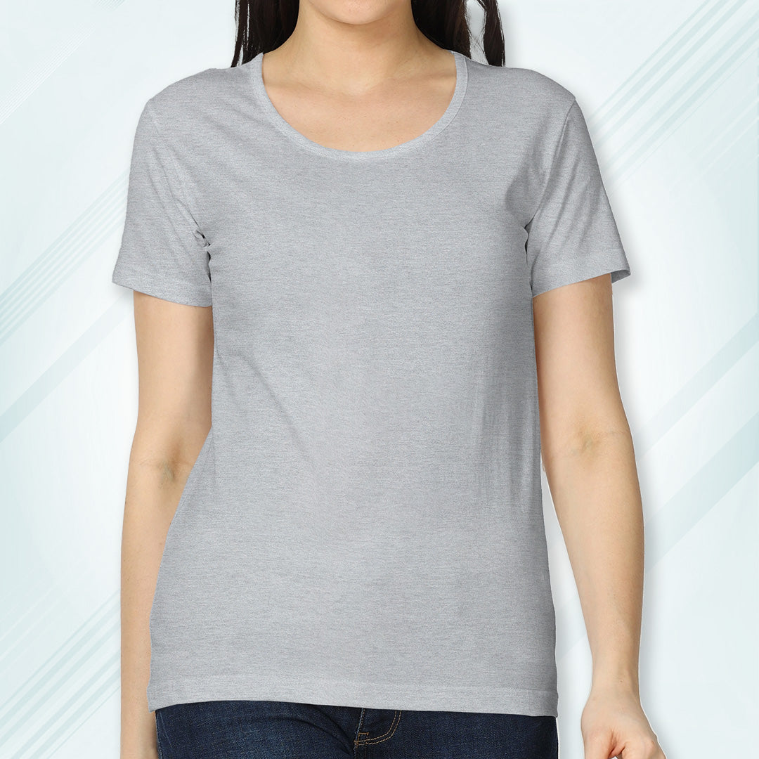 Grey Melange Round Neck Classic Solid T-shirt | Women