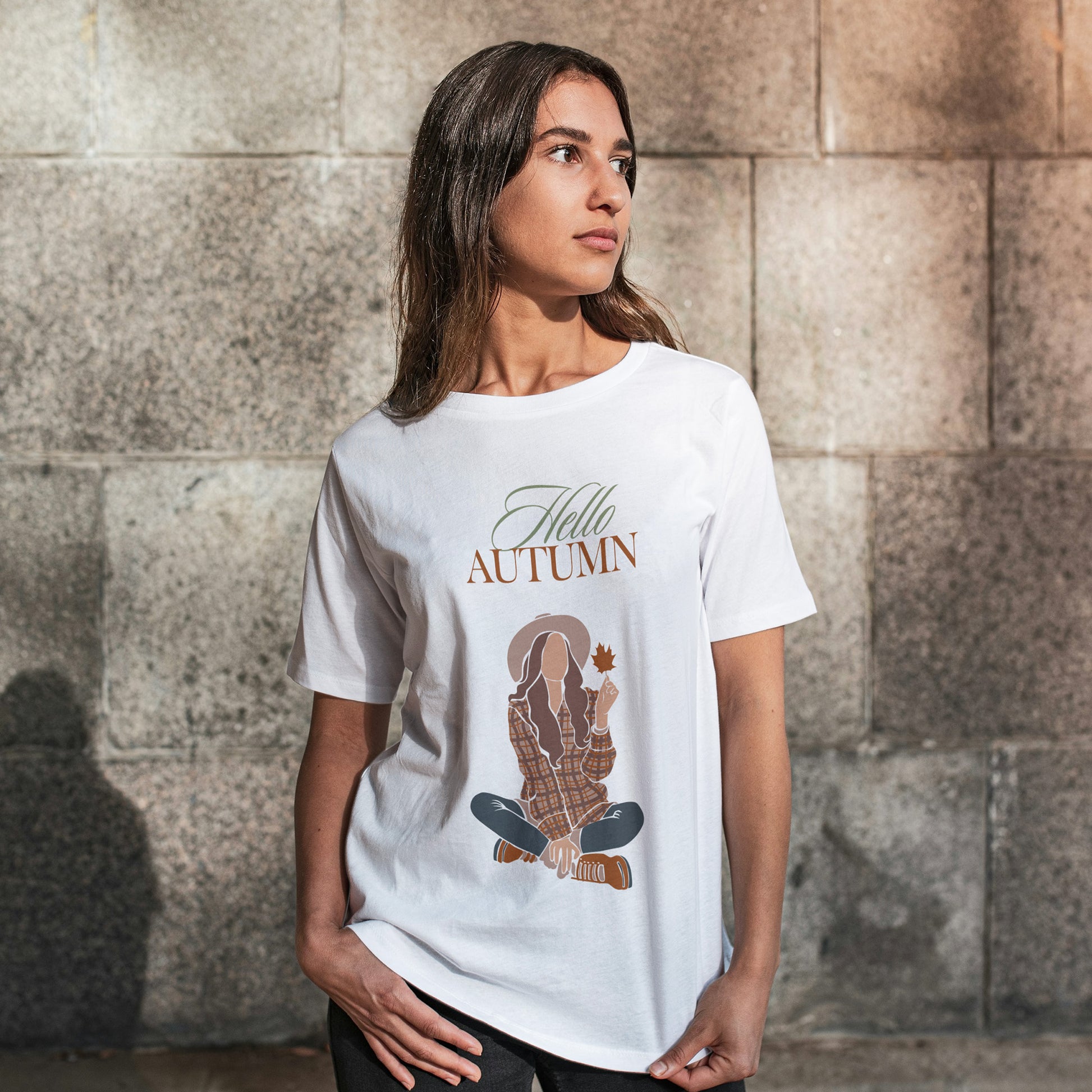 White Round Neck Oversized Cotton Printed T-shirt Hello Autumn Unisex
